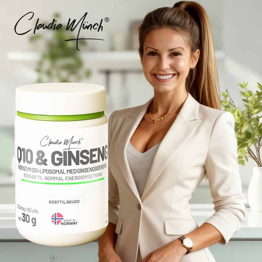 Ginposome Q10 kombinerer Coenzym Q10 og ginsenosider i en liposomal formulering som gir betydelig bedre biotilgjengelighet enn tradisjonelle kapsler. CoQ10 er essensielt for energiproduksjon i cellene og fungerer som en kraftig antioksidant som beskytter mot oksidativt stress. Ginsenosider fra ginseng bidrar til økt fysisk og mental ytelse.